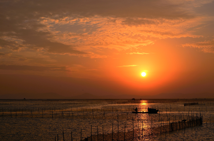 三等獎《夕陽下的九龍江--九龍江上的漁家》儲運室 朱美月