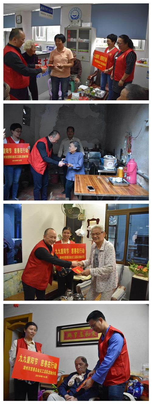 ????金秋十月,丹桂飄香,在重陽節即將來臨之際,漳州市慈善總會義工總隊組織開發“九九重陽節  慈善在行動”主題活動,公司義工分隊積極響應,于2018年10月15日前往10戶年邁體弱的孤寡老人、生活困難老人家庭噓寒問暖并送上慰問金。