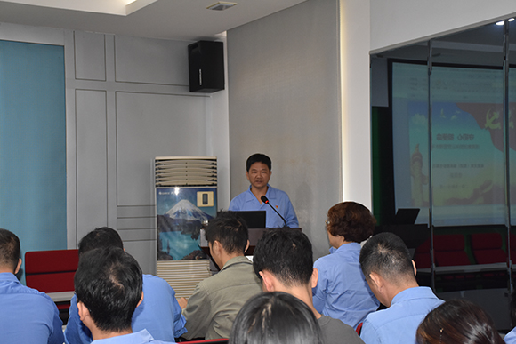 ????2019年11月7日下午,公司副總經理張逸青在公司二樓會議室講授《不忘初心,勇于擔責》專題黨課,其所在支部及掛鉤部門/車間黨員聆聽學習。課上,張逸青指出,“不忘初心、牢記使命”不僅是馬克思主義政黨的本質要求,也是中國共產黨人的不懈追求,是中國共產黨人的鮮明特質。“不忘初心,牢記使命”,是今天政治生活中的一個重要主題,也是中國共產黨人永恒的主題。接著,他結合公司實際及近期調研成果,主要圍繞“我們黨的初心和使命是什么;為什么要不忘初心、牢記使命;怎樣才能不忘初心、牢記使命;做不忘初心,勇于擔當的合格共產黨員”等內容展開論述。