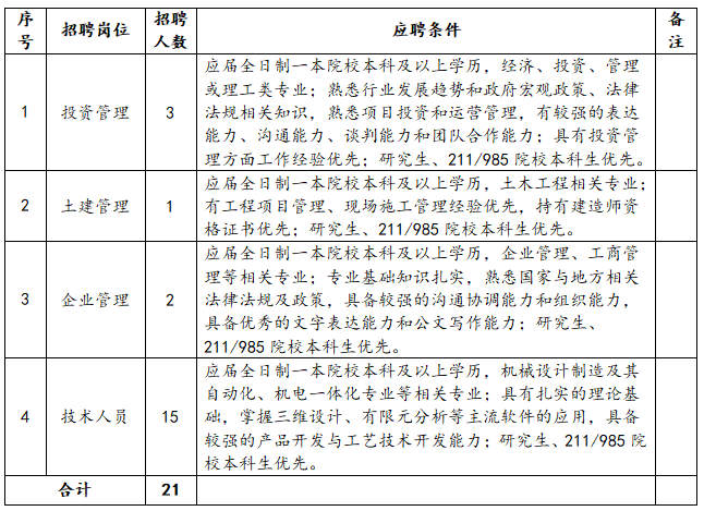 二、招聘崗位及具體條件