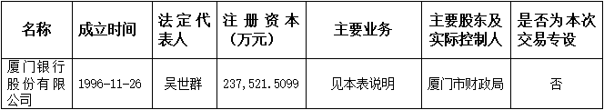 (二)廈門銀行股份有限公司為非上市金融機構,其基本信息如下:
