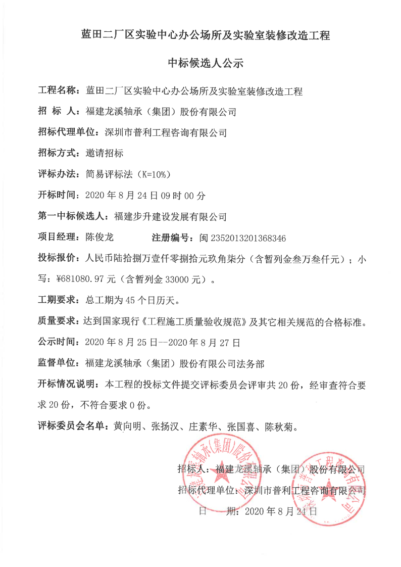 龍軸集團藍田二廠區(qū)實驗中心辦公場所及實驗室裝修改造工程中標(biāo)候選人公示