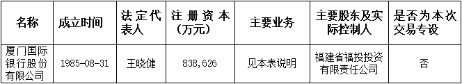 (二)廈門國際銀行股份有限公司為非上市金融機構,其基本信息如下: