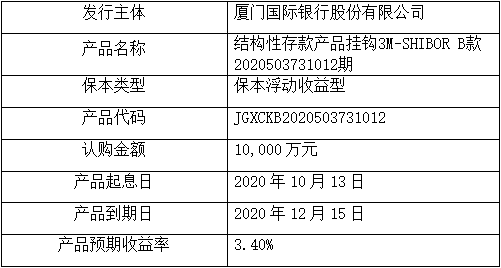 • 本次委托理財金額:委托廈門國際銀行理財10,000萬元。