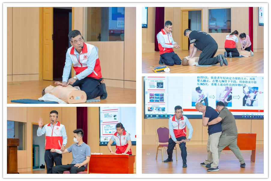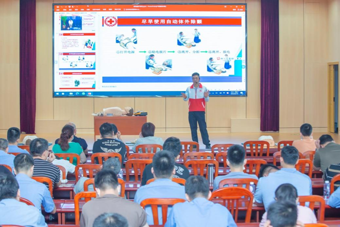 為向員工普及急救知識,提升急救技能,根據《2022年“安全生產月”活動方案》,公司于6月15日上午在藍田三廠區龍軸集團大禮堂組織開展了一場急救知識和技能培訓。培訓邀請龍文區紅十字會陳元福老師主講,一位助教協助開展培訓。