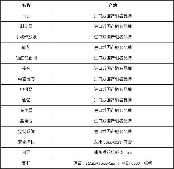 全電動自行走剪叉式高空作業平臺技術(協議)內容要求