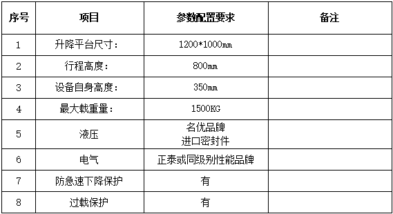 8. 0.8噸液壓升降平臺參數配置要求