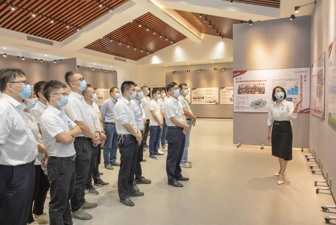 2022年11月1日,龍軸集團組織業務主辦以上干部及員工代表160余名,由集團黨委委員、常務副總經理鄭長虹,黨委副書記劉明福,黨委委員、紀委書記、監察專員王志劼,黨委委員、副總經理張逸青,黨委委員、副總經理林通靈,財務總監曾四新,總工程師林振元帶隊,分三批前往參觀漳州市國資委主辦的“國企發展這十年成就展”。