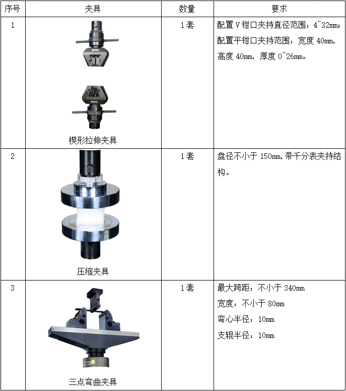 (3) 設(shè)備能夠按照標(biāo)準(zhǔn) GB/T 228.1-2021、ASTM E8/E8M-2016a、GB/T 7314-2010、GB/T 232-2010開展拉伸試驗(yàn)、壓縮試驗(yàn)、彎曲試驗(yàn),且有相關(guān)內(nèi)置程序,并按標(biāo)準(zhǔn)要求配齊相應(yīng)的夾持工裝。