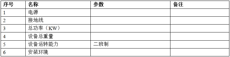 2.4設備其他技術指標:(需含設備總功率、電壓、電流、接口、環(huán)境溫度、場地等安裝環(huán)境有關要求)