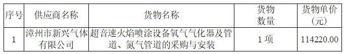 龍軸集團(tuán)超音速火焰噴涂設(shè)備氧氣氣化器及管道、氮?dú)夤艿赖牟少?gòu)與安裝中標(biāo)公告