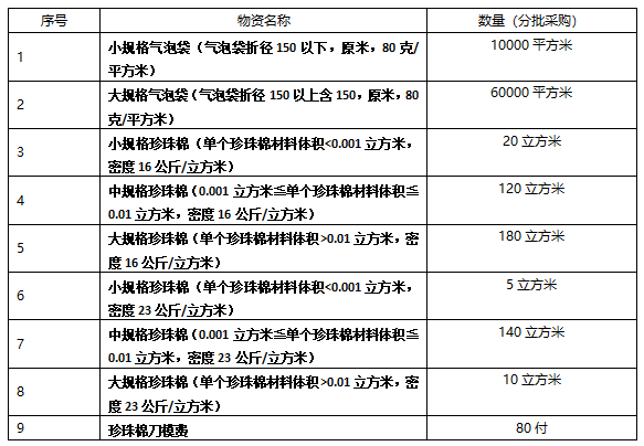 (三)項(xiàng)目內(nèi)容:福建龍溪軸承(集團(tuán))股份有限公司計(jì)劃采購氣泡袋、珍珠棉。