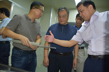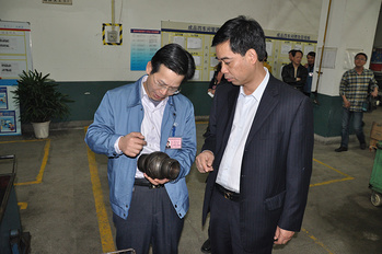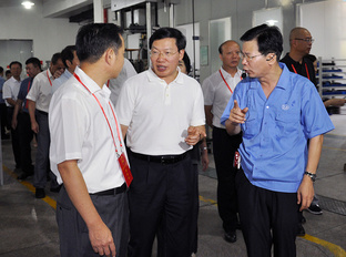 2017年5月9日,田力普(原國(guó)家知識(shí)產(chǎn)權(quán)司黨組書(shū)記、局長(zhǎng),左四)、李川(原福建省副省長(zhǎng),左一)到龍軸調(diào)研