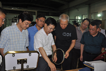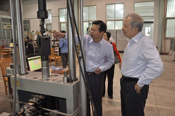 2013年10月24日,溫熙森(國(guó)防科技大學(xué)原校長(zhǎng),右一)到龍軸考察指導(dǎo)