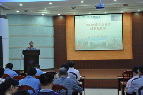 2015年4月27日至28日晚上,公司舉行2014年度中層主管述職報(bào)告及中層互評(píng)會(huì)議。公司高管及公司的92名中層主管參加了會(huì)議。此次述職報(bào)告44名中層主管代表本部門(mén)、車(chē)間作2014年—2015年上半年工作總結(jié)匯報(bào)。之后,公司高管及中層主管分別填寫(xiě)《2014年度中層主管考核評(píng)價(jià)表》,開(kāi)展中層主管評(píng)價(jià)及互評(píng)工作。