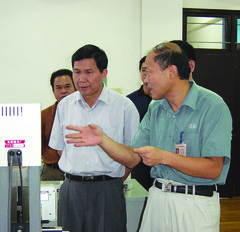 2003年10月22日,鄭松巖(時任福建省經貿委主任,左二)視察龍軸