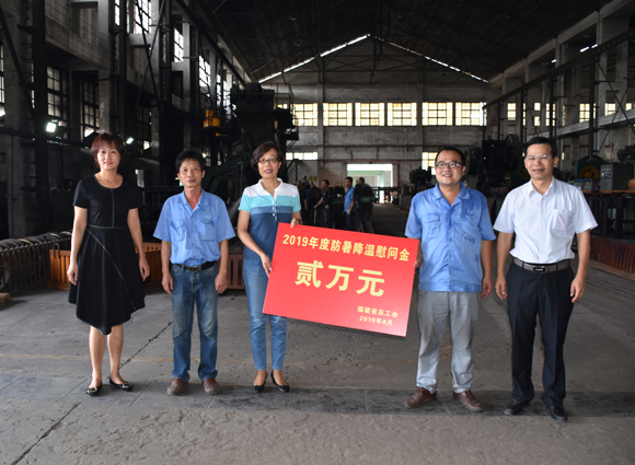 2019年8月14日下午,福建省總工會(huì)副巡視員劉冰新及漳州市總工會(huì)副主席陳美燕率防暑降溫慰問(wèn)團(tuán)一行蒞臨公司藍(lán)田一廠區(qū)生產(chǎn)現(xiàn)場(chǎng),看望慰問(wèn)一線員工。公司黨委書(shū)記、董事長(zhǎng)曾凡沛,黨委副書(shū)記、工會(huì)主席康安偉接待了慰問(wèn)團(tuán)一行。