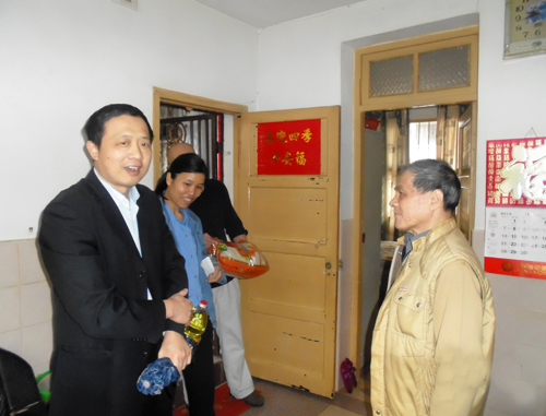 2013年4月28日,五一勞動節(jié)前夕,市國資委開展機關干部掛鉤幫扶困難群眾活動,陳偉成等6位國資委干部在公司工會領導張?zhí)┥?、洪麗玲等的陪同下,走訪慰問了我司6戶困難職工,了解他們的生活、健康情況,為他們送去米、油等生活用品。