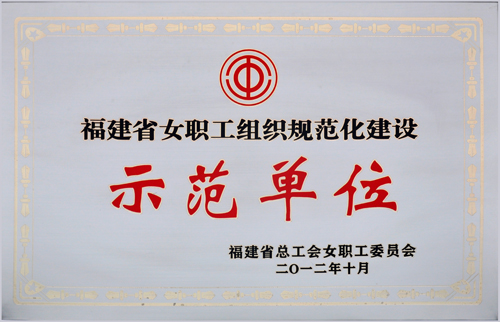 長期以來,公司女職工委員會以《中國工會章程》、《福建省女職工勞動保護條例》、《企業(yè)工會工作條例》為指導,團結和帶領廣大女職工積極投身到生產(chǎn)經(jīng)營和各項工作中,深入開展了豐富多彩的各項活動,充分發(fā)揮女職工在企業(yè)建設中的作用,為公司持續(xù)、穩(wěn)定、協(xié)調(diào)發(fā)展做出了積極的貢獻。被評為福建省首批“女職工組織規(guī)范化建設示范單位”。