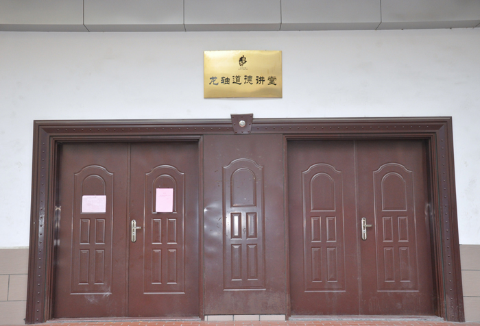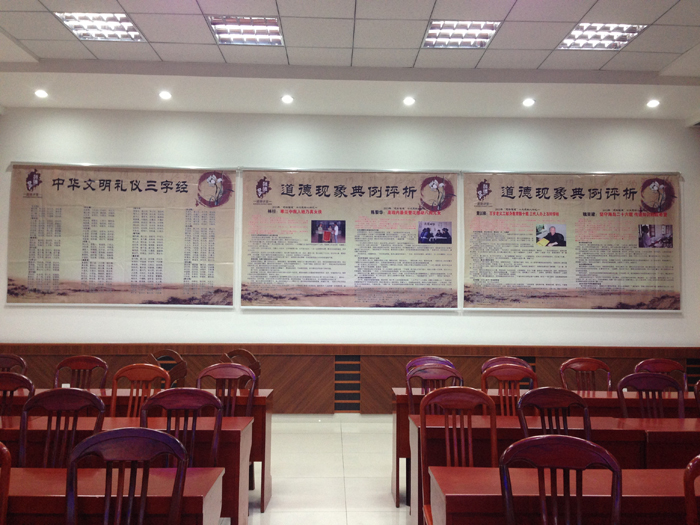 圖5:龍軸道德講堂正后方背景,懸掛三幅道德現象典例評析