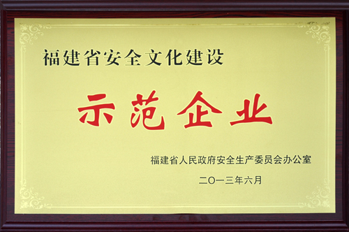 近日,公司被福建省政府授予“安全文化建設(shè)示范企業(yè)”榮譽(yù)稱號。這是對我司以安全文化促管理,以安全文化促發(fā)展,努力構(gòu)建安全型企業(yè)工作又一重要肯定。回顧創(chuàng)建歷程,這是公司全員參與、共同努力的成果。