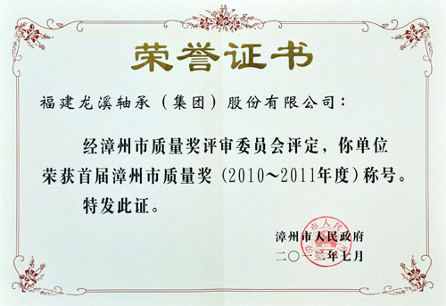 日前,福建龍溪軸承(集團)股份有限公司榮獲首屆漳州市質量獎。據悉,漳州市質量獎每兩年評選一次,首屆漳州市質量獎評選歷時2年,共有10家企業申報。經過組織申報、資格審查、材料評審、現場評審、綜合評價、審定公示等程序,漳州市政府研究決定,授予龍軸等5家企業首屆漳州市質量獎,并予以獎金20萬元。
